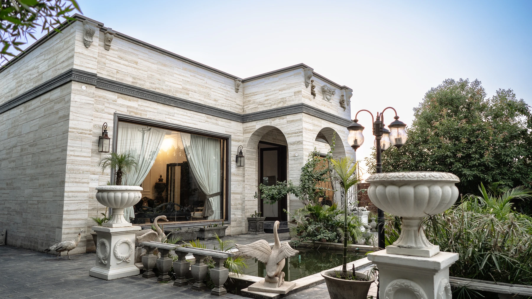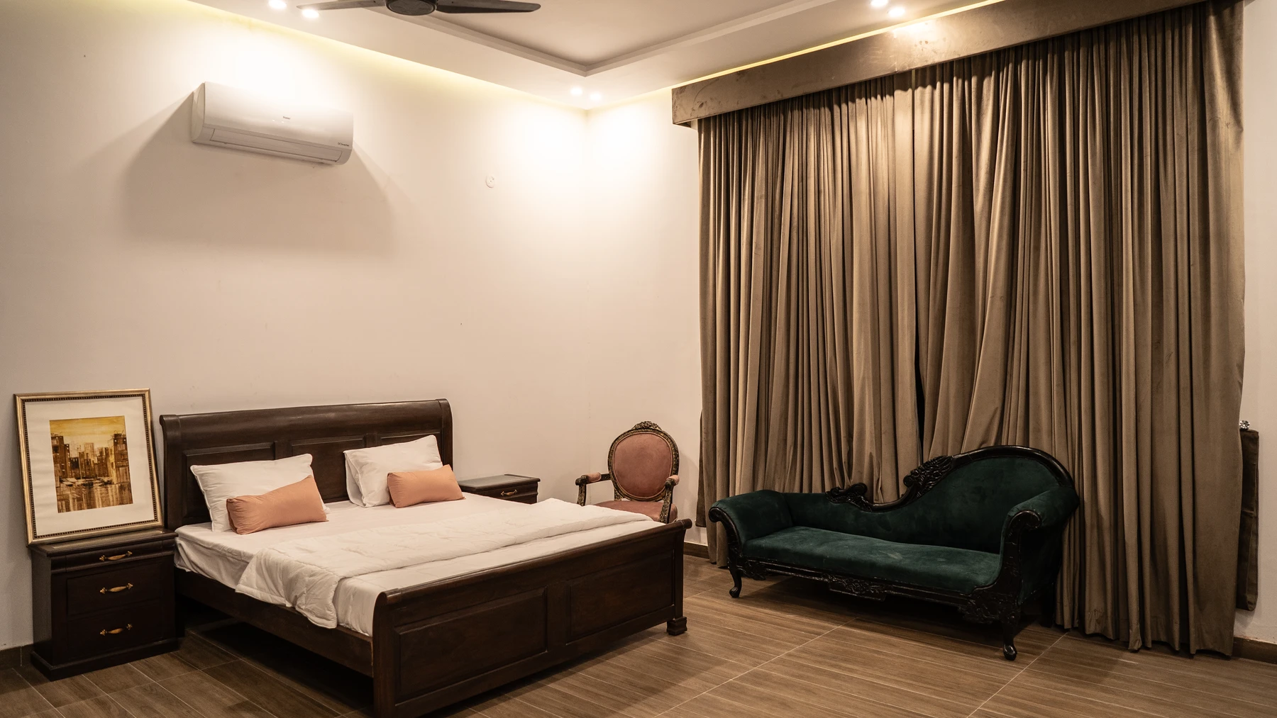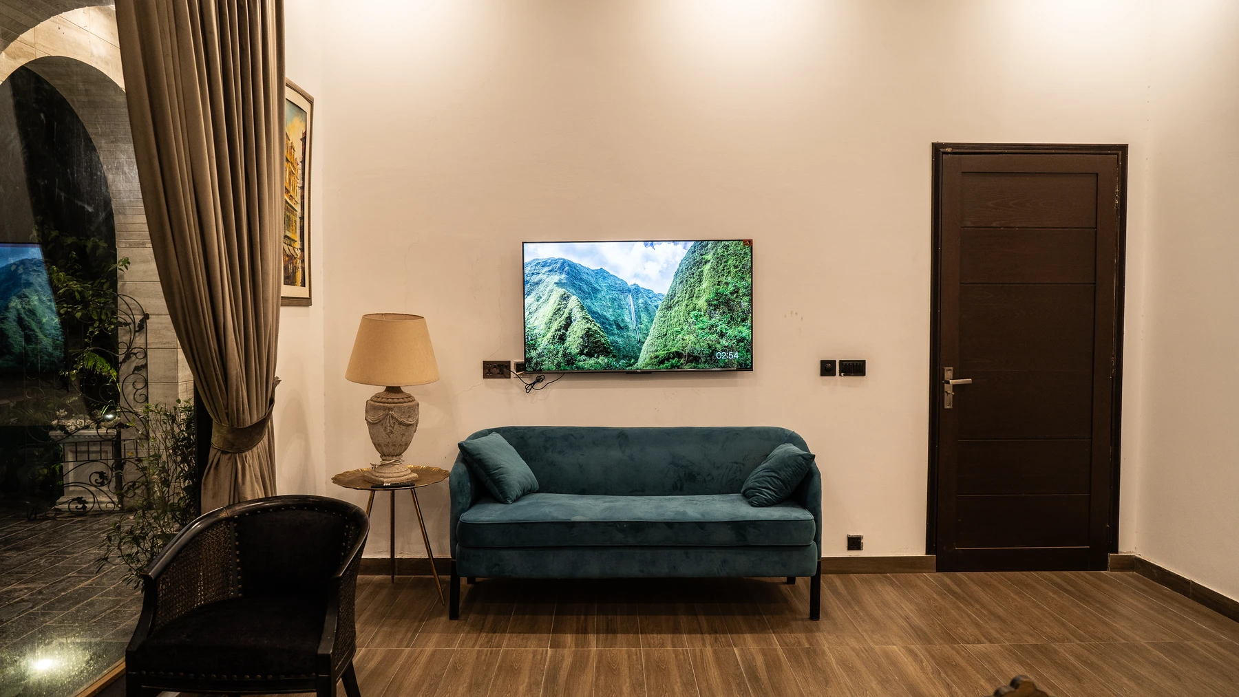 Experience peaceful luxury just outside the city center. This serene getaway features a lush lawn, vibrant plants, and birds, offering a calm retreat in nature. The modern, stylish interior ensures comfort, while the tranquil surroundings provide the perfect escape from the city’s hustle. Best for shoots, small gatherings and stays.