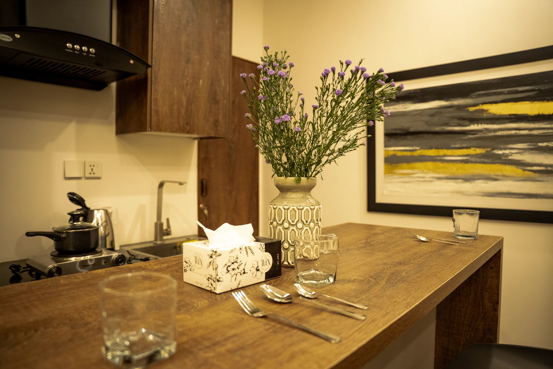 Welcome to AMETHYST by ORA. This state-of-the-art residence combines contemporary design with premium finishes, offering spacious layouts and breathtaking views. Our apartment features modern amenities, and elegant interiors, creating a serene oasis in a vibrant neighbourhood place right in the heart of Gulberg. Enjoy this exclusive experience the epitome of sophistication and comfort, all within walking distance of upscale dining, shopping, and entertainment. Book your escape now.
